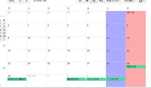 追記 Googleカレンダーの仕様が変わったため、使用できなくなった…… 本文 Googleカレンダーで一番左を月曜日にすると、 休日がまとまって嬉しいんだけど、 普通のカレンダーは一番左が日曜日だから、 曜日と日付の対応を間違える。 そこで、Chromeの拡張機能…
